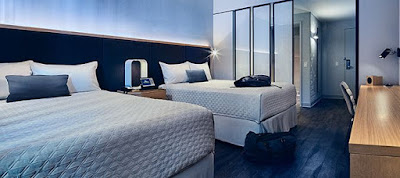 The rooms and suites of Universal’s Aventura Hotel provide a serene, modern environment in which to rest the mind and body. Uncomplicated, clean, and bright, these accommodations are at once contemporary and engaging. Standard and deluxe rooms at Aventura offer 2 queen beds or a king bed and sleeper sofa. The deluxe rooms are a bit bigger than the standard rooms. The kids suite sleeps up to five guests and features a special interior area for the kids that includes two twin beds.