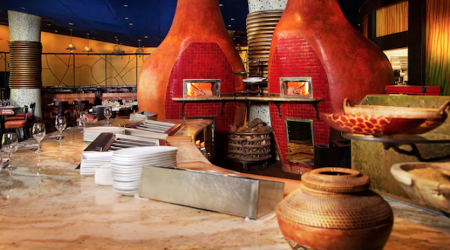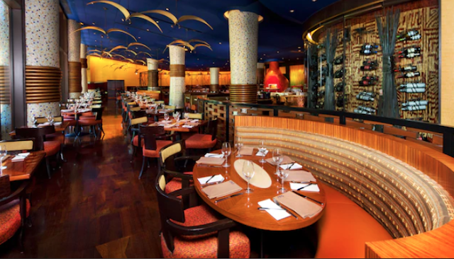 If you are looking for exotic flavors and a Signature Dining experience at Disney World, head over to a restaurant that is slightly off the beaten path, Jiko – The Cooking Place. Jiko is tucked away at the beautiful Disney’s Animal Kingdom Lodge – Jambo House. The name Jiko means “the cooking place” and is in reference to the huge wood-burning ovens in the middle of the restaurant. The menu focuses on traditional African, Indian, and Mediterranean cuisine. Jiko has participated in the Disney Dining Plan and required two credits. (As a reminder, Disney currently is not offering Dining Plans.) If you are paying out of pocket, you can expect to spend $40-$60 per person on entrees. The restaurant is open daily for dinner, so be sure to make an advanced dining reservation!